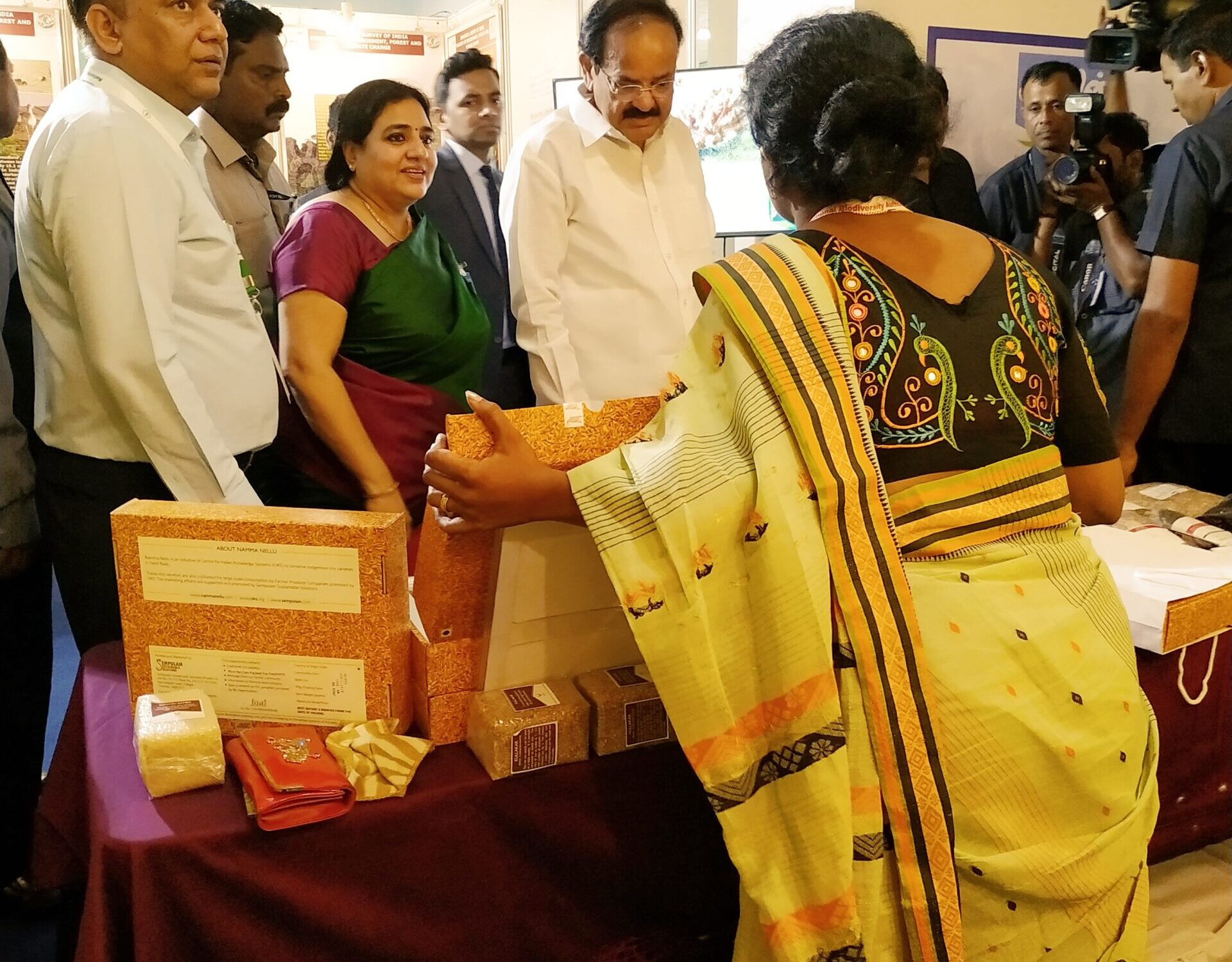 Centre for Indian Knowledge Systems (CIKS) in partnership with Sempulam Sustainable Solutions exhibited their collection of traditional rice varieties at the International day for Biological Diversity 2019 celebrations hosted by the National Biodiversity Authority, Ministry of Environment, Forest and Climate Change at the Kalaivanar Arangam, Chennai on 22nd May 2019. Honourable Vice President of India Shri. M. Vengaiya Naidu, the Chief Guest of the event visited the CIKS stall and interacted with the officers. As part of creating market linkages for the farmer producer companies this event has opened potential avenues.