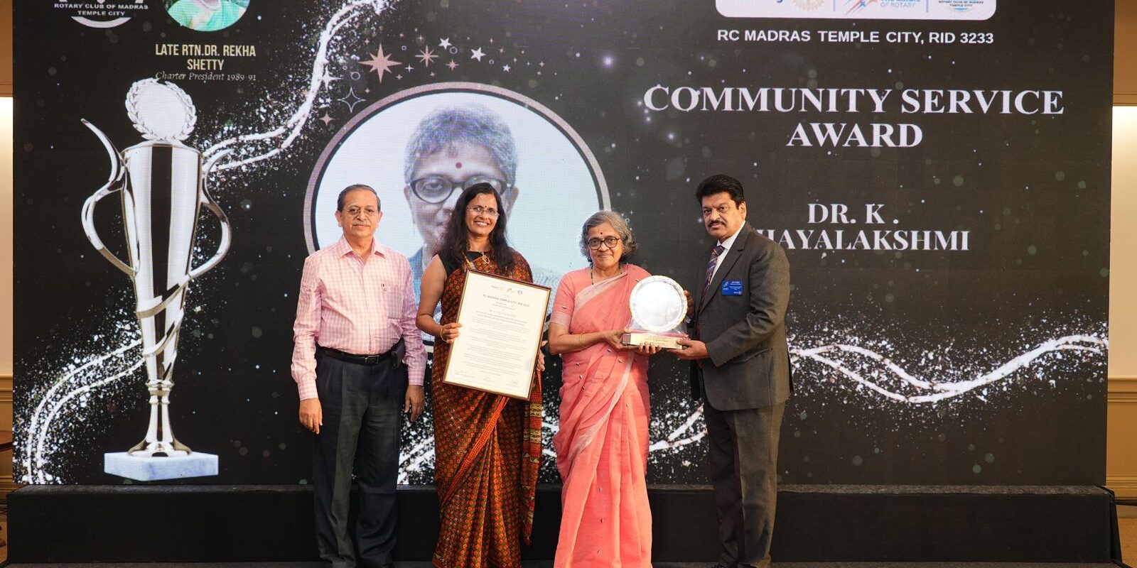 Our Research Director, Dr. K. Vijayalakshmi, was given an award by the Rotary Club of Madras Temple City on 3rd March 2025 at the Trident Hotel. The chief guest for this function was PDG RTN. Pearl Ijeoma Okoro, Trustee of “The Rotary Foundation” (2024-28).